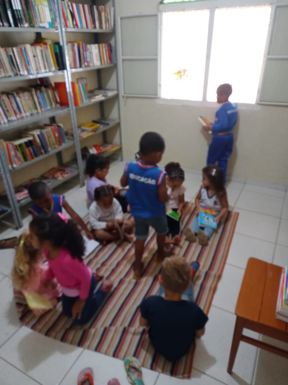 Alunos da creche 4, do anexo da Escola municipal Santa Luzia – da Rede Municipal de Educação de Casimiro de Abreu – foram ao Pólo Cultural Marcelo Elvas Severino, em Professor Souza, para ler e aproveitar um pouco do espaço. Acompanhados pelas professoras, as crianças, dançaram, escolheram livros e se divertiram a valer!